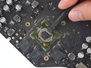 Используйте лопатку, чтобы аккуратно снять излишки термопасты с GPU.