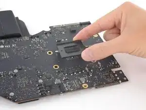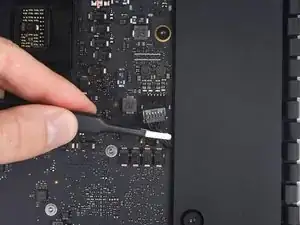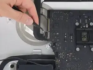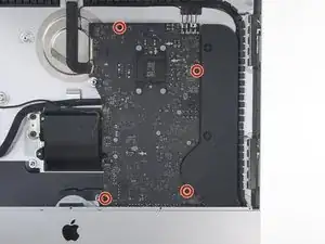 Поднимите материнскую плату прямо вверх и извлеките её из iMac.