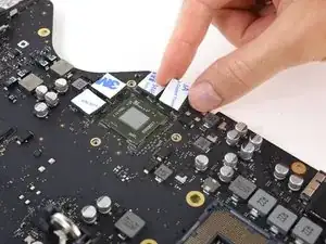 Нанесите термопрокладки на четыре модуля VRAM вокруг GPU.