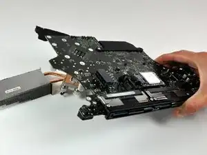 Аккуратно поднимите кронштейн радиатора с логической платы.