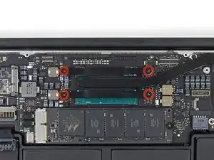 Удалите четыре 2,5 мм винта T5 Torx, фиксирующие радиатор к логической плате.