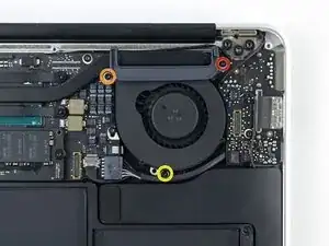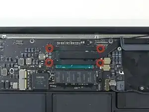 Выверните четыре винта T5 Torx 2,5 мм, фиксирующие радиатор к логической плате.