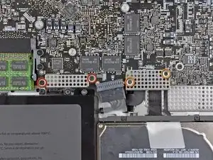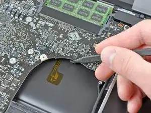 При работе рядом с логической платой всегда разумно сначала отключить батарею, чтобы избежать короткого замыкания.