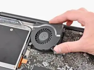Снимите три винта Phillips 3.1 мм, крепящие правый вентилятор к логической плате.