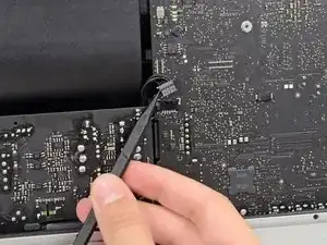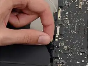 Аккуратно вытяните разъём левого динамика прямо из его гнезда на логической плате.