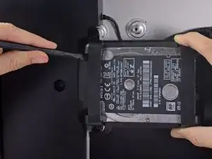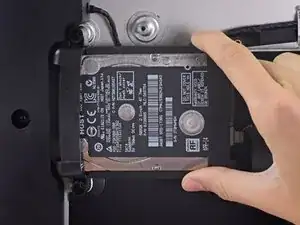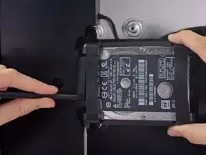Снимите левый и правый кронштейны жесткого диска с iMac.
