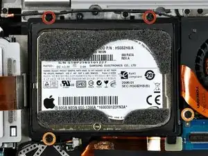 Снимите декоративную заглушку винта с клея, крепящего её к кронштейну жёсткого диска.