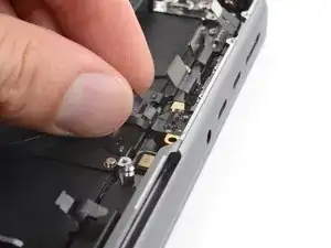 Используйте отвертку P2 pentalobe, чтобы выкрутить девять винтов длиной 1.6 мм, фиксирующих антенную планку.