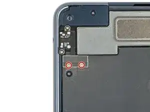С помощью отвёртки T5 Torx выкрутите два винта 4,8 мм, крепящие разъём для наушников.