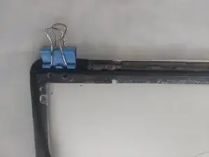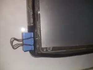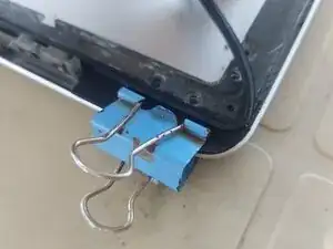 Используя маленькую прищепку, зажмите края, удерживая резиновое уплотнение на месте. Это поможет предотвратить его движение, пока вы позиционируете оставшуюся резину вокруг рамки LCD.