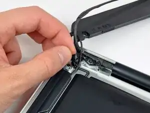 Используйте кончик лопатки, чтобы поддеть правый динамик и оторвать его от клея, фиксирующего его к верхней крышке.