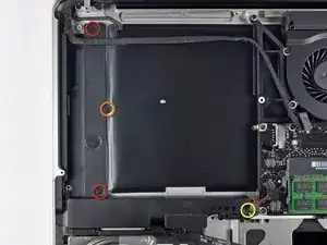 Снимите три Phillips-винта длиной 3,5 мм, крепящих оптический привод к верхней крышке.