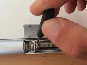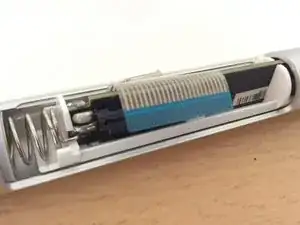 Если ваши батареи застряли, то именно сейчас вы сможете их удалить. Место теперь свободно, и вы можете использовать что-то вроде длинной отвертки, чтобы проткнуть цилиндр и вытолкнуть застрявшие батареи. (Рекомендую вытаскивать их так же, как вы их вставляли, чтобы избежать повреждения шлейфа).