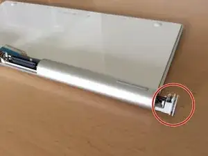 Теперь (все еще помня о том, чтобы не повредить шлейф), вы можете начать вытаскивать всю сборку, сначала кнопкой питания. Я отметил кнопку питания, так что вы поймете, о чем я.