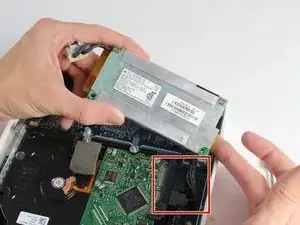 Плата по-прежнему соединена с корпусом при помощи разъёмов. НЕ вынимайте плату полностью на этом этапе, только освободите её из-под фиксаторов.
