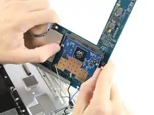 Оттяните две указанные защёлки от модуля Wi-Fi и аккуратно вытащите плату.