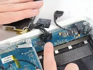 Снимите SATA-разъём и разъём питания с конца жёсткого диска, потянув кабели прямо от точек подключения.