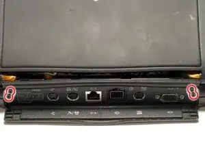 Откройте крышку разъёмов, расположенную сзади ноутбука.