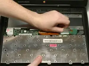После освобождения кабелей компенсации натяжения поднимите клавиатуру вверх.