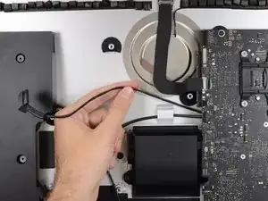 Не пытайтесь полностью извлечь блок питания из iMac — он всё ещё подключён к логической плате.