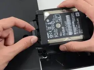 Снимите левую и правую скобы жесткого диска с iMac.