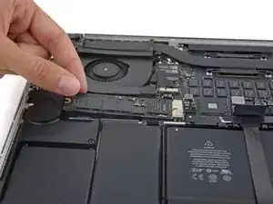 Осторожно приподнимите каждую сторону разъёма аккумулятора, чтобы выпрессовать разъём из гнезда на плате.