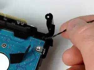 С помощью лопаточки аккуратно отсоедините термодатчик от жёсткого диска.