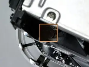 Снимите чёрный винт Phillips в верхнем левом углу. Этот винт скрыт от прямого взгляда.