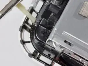 Снимите два серебристых винта Phillips, которые крепят SuperDrive к внутренней раме.