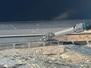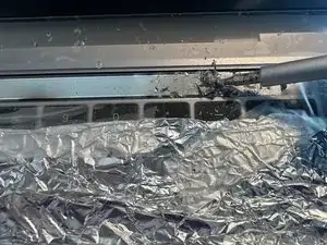 Учитывая, насколько грязными оказались следующие шаги у меня, советую заклеить нижнюю часть экрана и верх клавиатуры, чтобы предотвратить попадание осколков и мусора. Я положил фольгу на остальную часть клавиатуры, но лучше подойдёт бумага или плёнка.