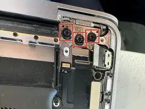 Используйте отвертку Torx T3, чтобы выкрутить три винта 1.9 мм, фиксирующих плату логики.