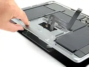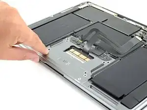 Используйте пинцет, чтобы отогнуть ленту, закрывающую разъём кабеля трекпада.