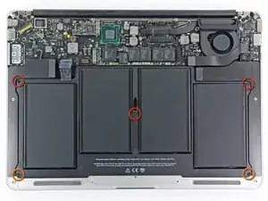 Удалите пять винтов, удерживающих батарею в верхнем корпусе:
