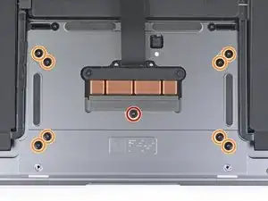 Используйте отвертку T5 Torx, чтобы выкрутить следующие винты, крепящие тачпад: