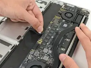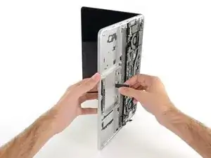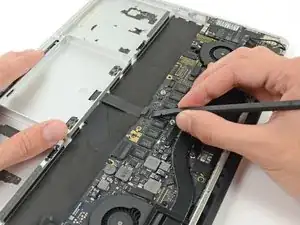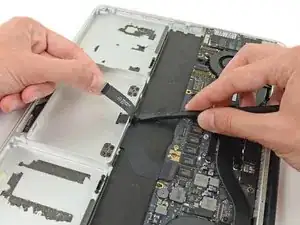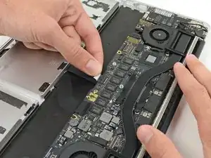 Переверните устройство и повторите описанную выше процедуру для двух элементов батареи с правой стороны MacBook Pro.