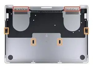 Используйте отвёртку P5 Pentalobe, чтобы снять шесть винтов, крепящих нижнюю крышку: