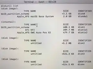 Мне пришлось отформатировать новый SSD через терминал, так как у меня не было специального установочного комплекта. Отключите все остальные внешние накопители. В терминале введите следующую команду и нажмите клавишу Return: diskutil list