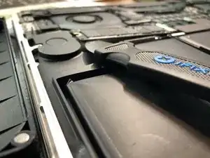 Выключите компьютер и переверните его, чтобы снять заднюю крышку. Используйте биту P5 с крестообразным наконечником для выкручивания винтов. Сложите их в безопасную нескользящую ёмкость. Эти винты очень маленькие. Кроме того, самые короткие винты расположены ближе к экрану — их необходимо отдельно пометить, чтобы установить на прежние места. В противном случае они будут выступать из этих отверстий.