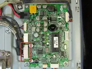 Теперь найдите и снимите один винт с крестообразной головкой, который крепит экран EMI к дисплею.
