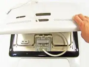 Снимите серую заднюю панель, подняв нижнюю часть и протянув кабель ADC через отверстие.