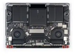 Также снимите двенадцать винтов P2 pentalobe длиной 1,1 мм (по шесть с каждой стороны).