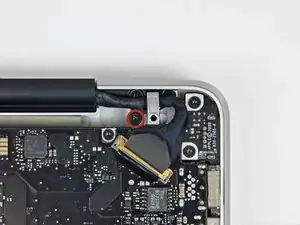 Удалите последний оставшийся винт T6 Torx 6 мм, закрепляющий дисплей к верхней части корпуса.