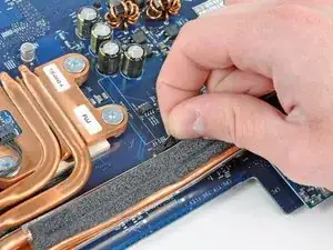 Снимите два винта T8 Torx, фиксирующие GPU к логической плате.