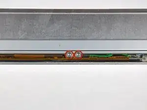 Снимите по одному винту Филлипс из нижнего левого и нижнего правого углов дисплея.