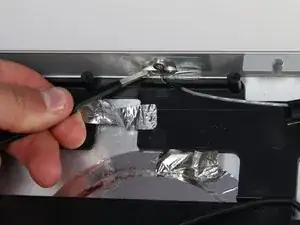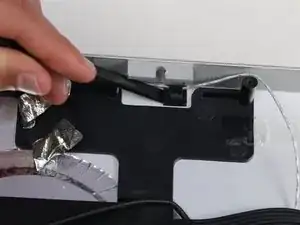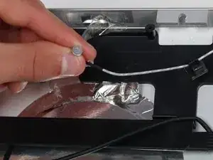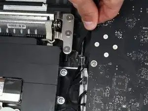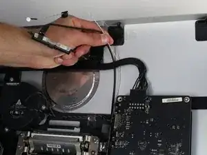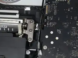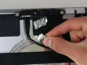 После снятия ЖК-панели веб-камера и микрофон кажутся легко доступными. Две провода, соединяющие их с основной платой, пролегают за множеством других проводов и компонентов, из-за чего до их разъемов труднее добраться и вынуть их. Кроме того, так как микрофон закреплён на клее, для его замены обязательно нужен инструмент для поддевания!