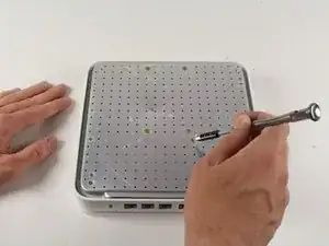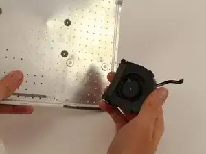 Вентилятор регулирует воздушный поток к Time Capsule, позволяя внутренним компонентам поддерживать оптимальную температуру. Если вентилятор вышел из строя, его очень легко заменить, и для этого требуется всего несколько инструментов.