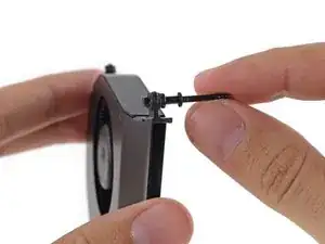Поднимите вентилятор строго вверх, чтобы освободить захватывающий винт из его отверстия в логической плате.