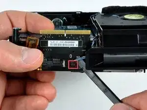 Используйте плоский конец лопатки, чтобы поддеть разъём шлейфа аудио и снять его с аудиоплаты.