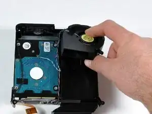 Удалите два винта Phillips, крепящие вентилятор к внутренней раме.