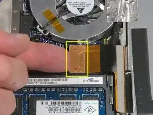 Отклейте серебристую фольгированную ленту между вентилятором и оптическим приводом.